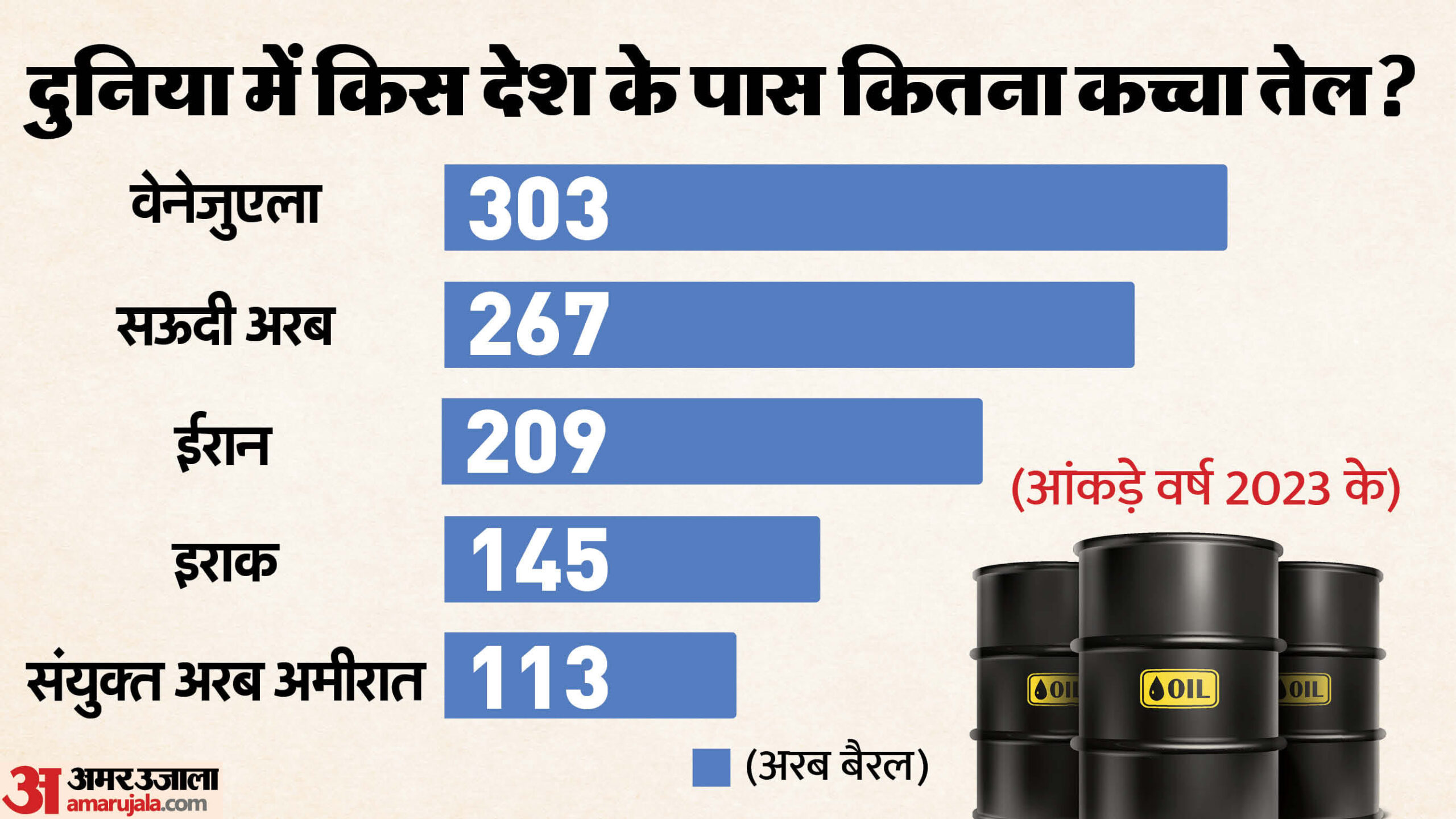 बता दें कि वेनेजुएला के पास करीब 303 अरब बैरल कच्चे तेल का विशाल भंडार है, जो दुनिया के कुल तेल भंडार का लगभग पांचवां हिस्सा है। यह जानकारी अमेरिकी ऊर्जा सूचना प्रशासन (ईआईए) के आंकड़ों पर आधारित है। विशेषज्ञों का मानना है कि इतना बड़ा तेल भंडार देश के भविष्य की दिशा तय करने में निर्णायक भूमिका निभाएगा।