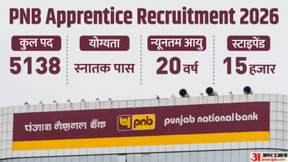 PNB Recruitment 2026: पंजाब नेशनल बैंक ने बंपर भर्ती का नोटिफिकेशन जारी किया है। इस भर्ती के जरिए यूपी, हिमाचल प्रदेश समेत कई राज्यों में 5,000 से अधिक पदों पर चयन किया जाएगा। स्नातक पास उम्मीदवार इस भर्ती के लिए आवेदन कर सकते हैं।